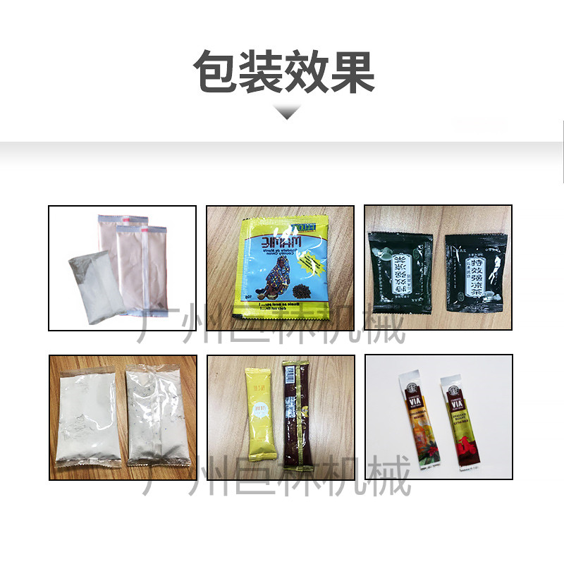 本机采用光电眼控制系统、螺旋计量、步进电机驱动性能可靠稳定.从计量、充填粉、面粉、、制袋、打码到产品输出一次完成、适用流动性较好的粉沫、豆胡椒粉、奶粉、发酵粉等物料.